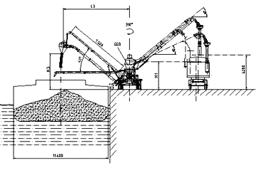 Досить ефективна та поширена схема розвантаження судів. Розвантаження, може, здійснюватися на автотранспорт, залізничні вагони, накопичувачі чи інші конвеєри. Конструкція конвеєра NEUERO типу GSD дозволяє розташовувати обладнання вздовж борту судна, а не тільки впоперек, що дає можливість значно розширити діапазон суден, що обслуговуються.