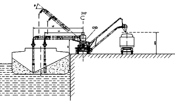 Поширений спосіб навантаження/дозавантаження суден великої вантажності. За такою схемою перевантаження можна розраховувати на максимальну продуктивність: безперервна подача великих обсягів зерна, відносно невеликі відстані перевалки, відсутність втрат і залишків вилучених матеріалів.