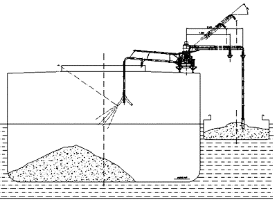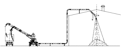 Коли відстань від вагона до судна не дає можливості використовувати розвантажувальну стрілу, матеріалопровід монтується на опорах із використанням колін 45 або 90 градусів. Розвантаження, може, здійснюватися безпосередньо в транспорт або через проміжну лійку-дозатор. Остання, може, служити накопичувачем.