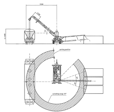 Якщо вагони подаються досить близько до краю причалу, то конвеєр можна розташувати на борту судна. Це дасть змогу значно спростити процес компенсації осадки завдяки перевагам гідравлічної стріли (підйом/опускання та телескопічний хід 2,2 м).