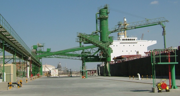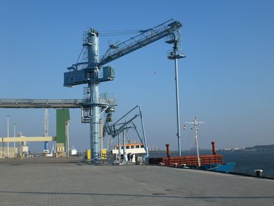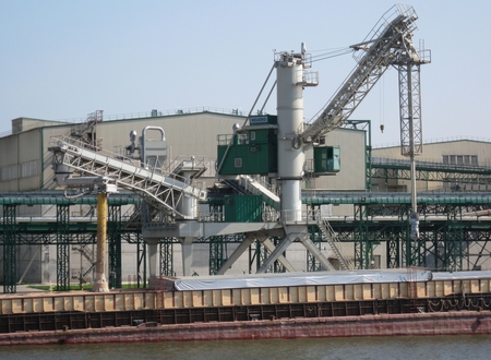 Стріла лінії розвантаження, може, бути використана, як вантажна та дає змогу переміщати вантажі та техніку вагою до 7 тонн. Навантажувальна стріла показана на нижній фотографії в паркувальному положенні. Спеціальне обладнання дає змогу значно знизити утворення пилу під час навантаження зерна на судна.