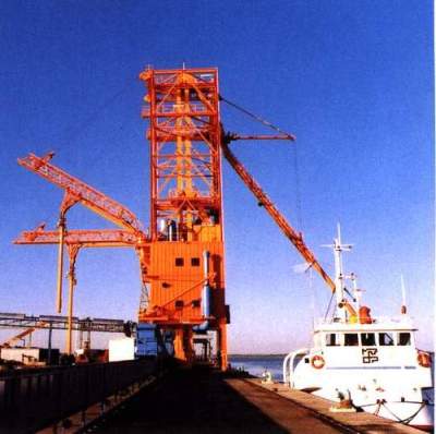 Подробнее ...Пересувна перевантажувальна комбінована завантажувально-розвантажувальна машина на рейковому порталі. Система дає змогу відвантажувати зерно із суден на два незалежних конвеєри, а також завантажувати на судна продукти перероблення (крупу та комбікорми). 2 розвантажувальні стріли завдовжки 25 метрів повертаються на 180 градусів, підіймаються на кут до 55 градусів та обладнані горизонтальними та вертикальними телескопічними трубами.